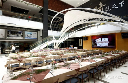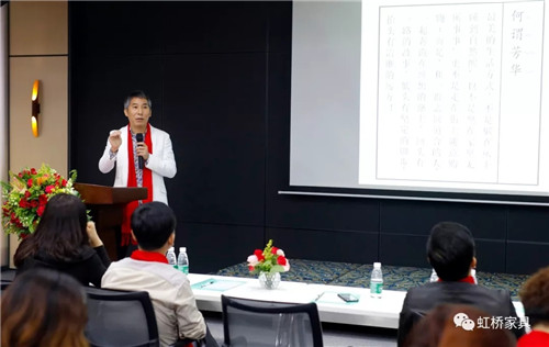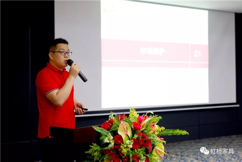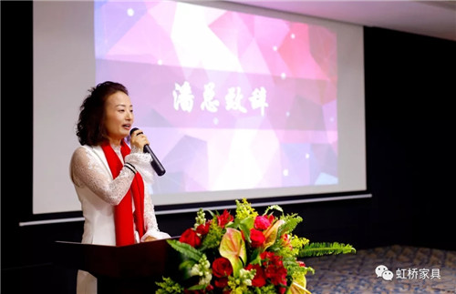佛山市虹橋家具有限公司營銷執行總裁潘紅梅女士首先致辭,致辭中,潘總談到在新的一年中將對鐵桿老客戶有更多優惠政策,以回饋多年來一直支持虹橋的老客戶們;并號召伙伴們能以市場為導向,以消費者為中心,在廣闊的營銷道路上越走越遠。