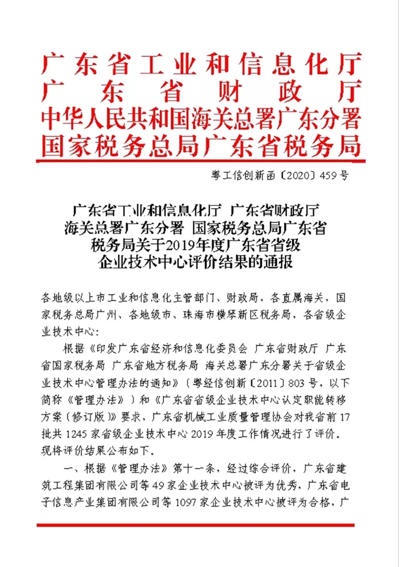 根據(jù)《印發(fā)廣東省經(jīng)濟和信息化委員會廣東省財政廳廣東省國家稅務(wù)局廣東省地方稅務(wù)局海關(guān)總署廣東分署關(guān)于省級企業(yè)技術(shù)中心管理辦法的通知》(粵經(jīng)信創(chuàng)新〔2011〕803號)和《廣東省省級企業(yè)技術(shù)中心認(rèn)定職能轉(zhuǎn)移方案(修訂版)》要求,廣東省機械工業(yè)質(zhì)量管理協(xié)會對廣東省前17批共1245家省級企業(yè)技術(shù)中心2019年度工作情況進行了評價。其中,佛山市虹橋家具有限公司通過2019年度省級企業(yè)技術(shù)中心評選。
